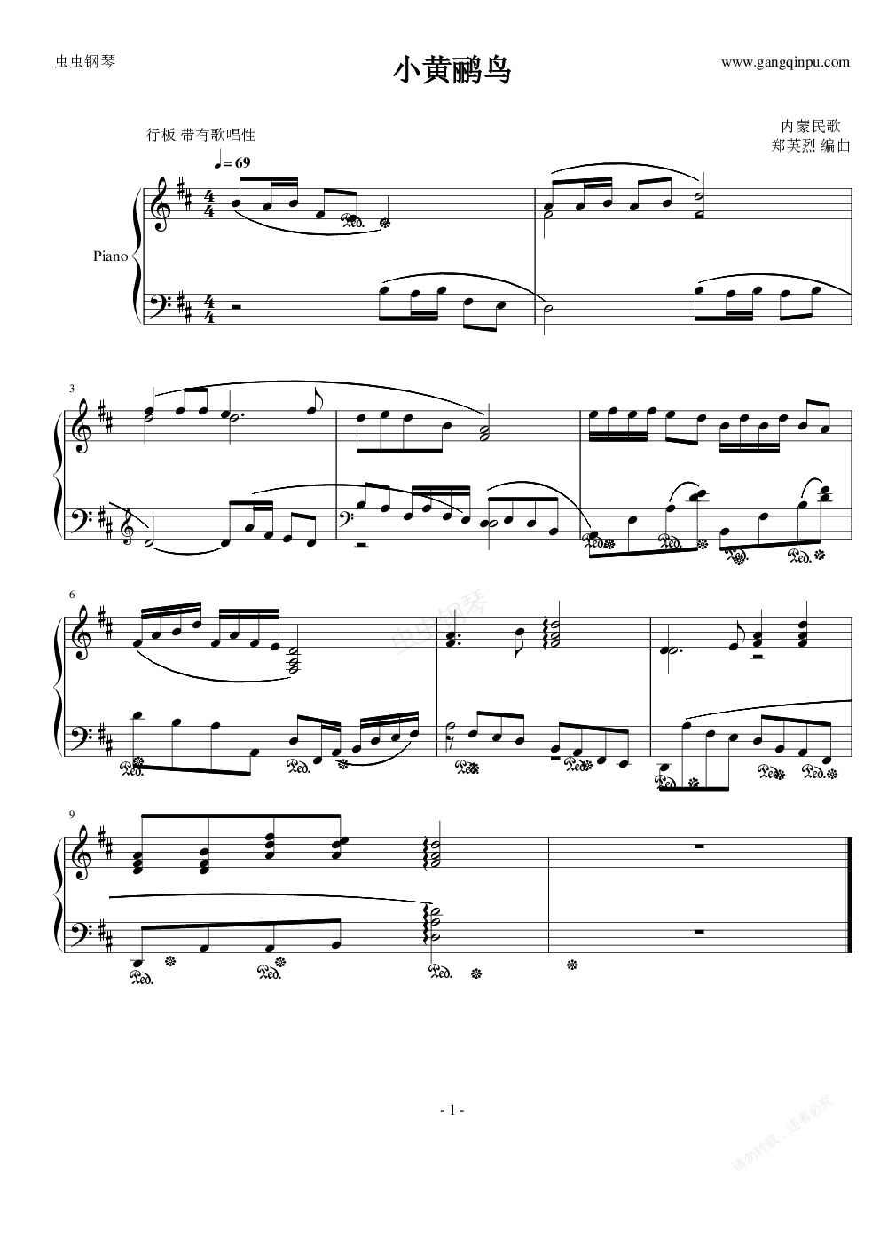钢琴谱:小黄鹂鸟