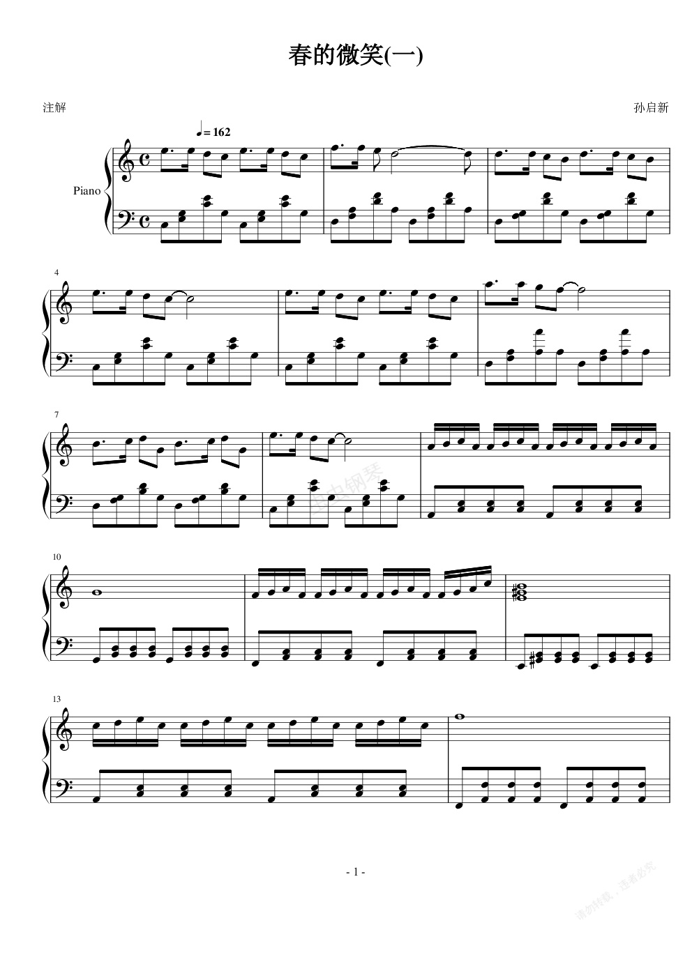 钢琴谱:春的微笑(一)