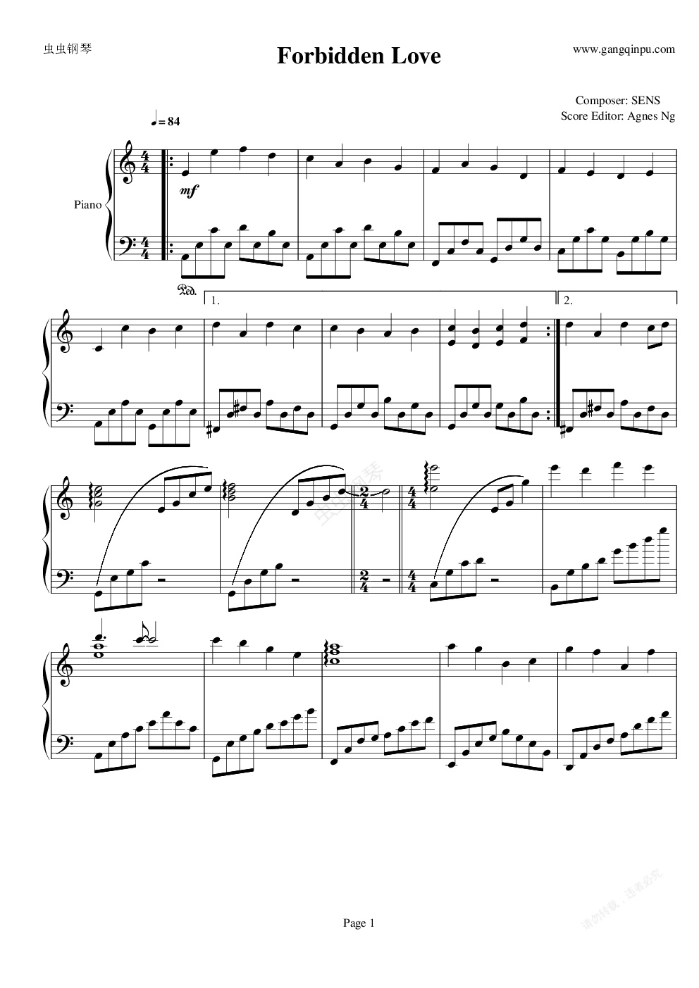 钢琴谱:Forbidden Love