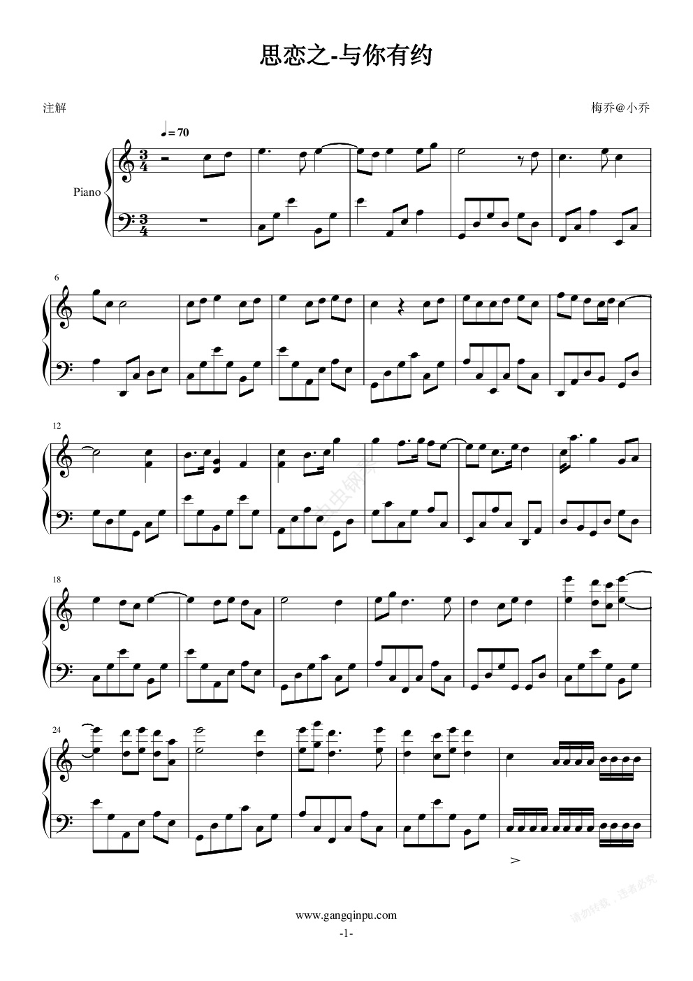 钢琴谱:思恋之-与你有约
