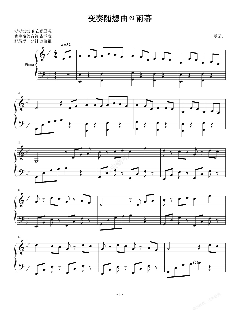钢琴谱:随想变奏曲の雨幕
