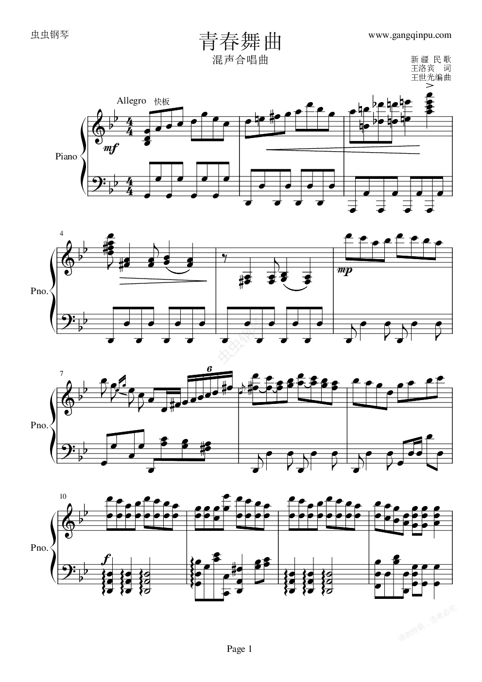 钢琴谱:青春舞曲 钢琴伴奏谱