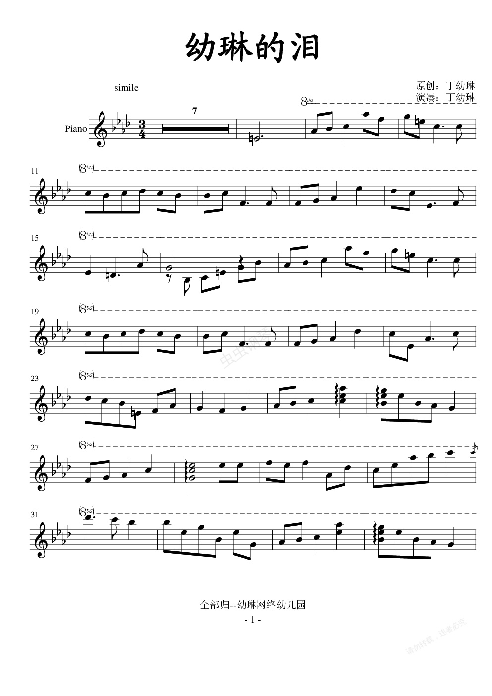 您的位置: 首页 > 钢琴谱库 > 幼琳的泪