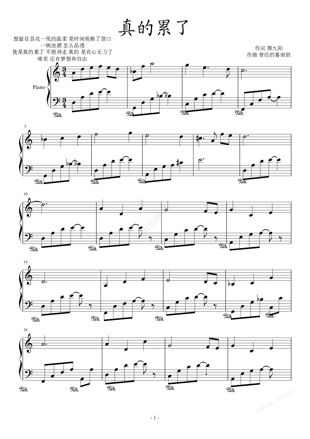 您的位置: 首页 > 钢琴谱库 > 真的累了