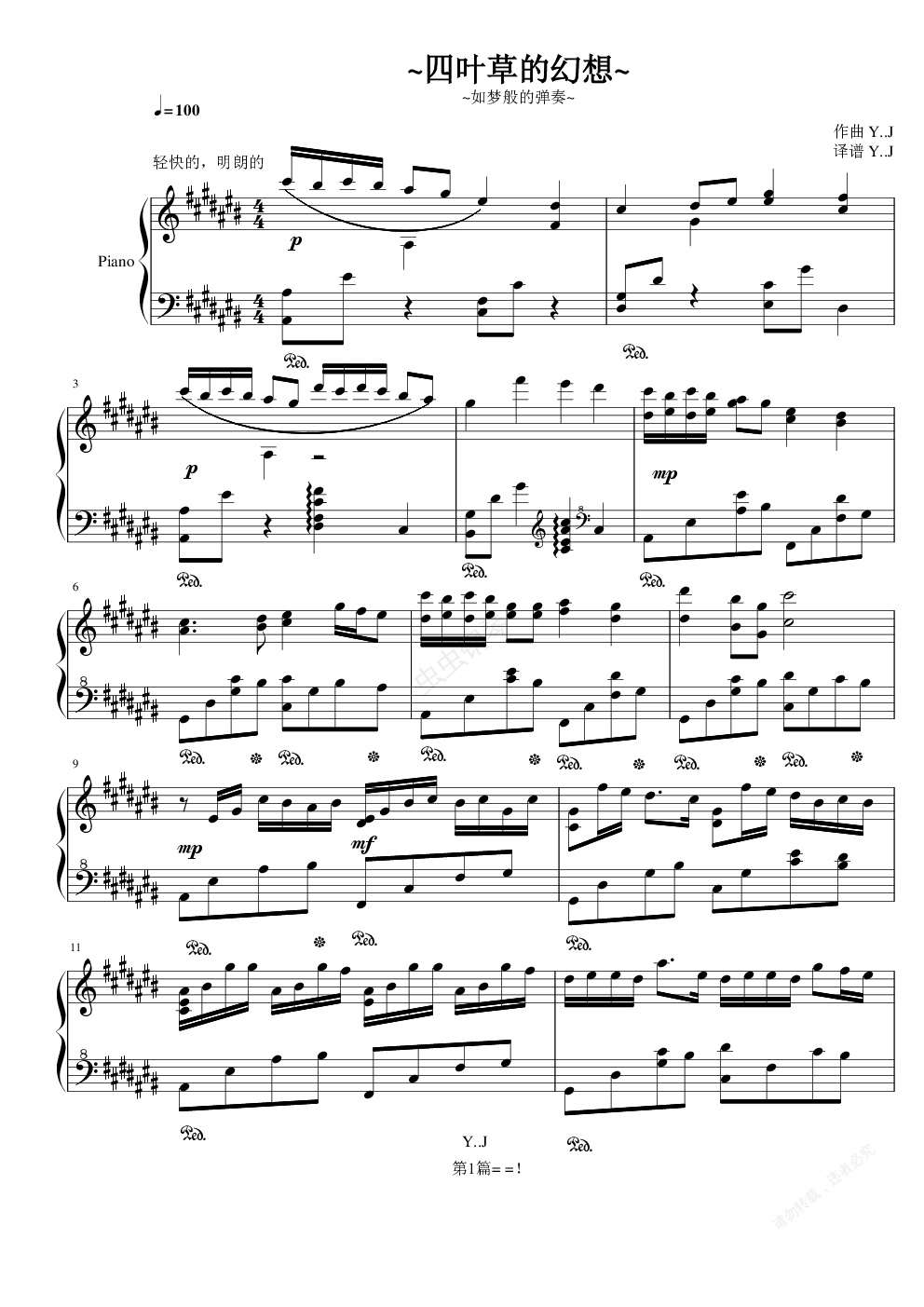 钢琴谱稍有修改,这个曲子原曲是一个人弹不出来的,所以后来想来想去就边写钢琴谱边修改。