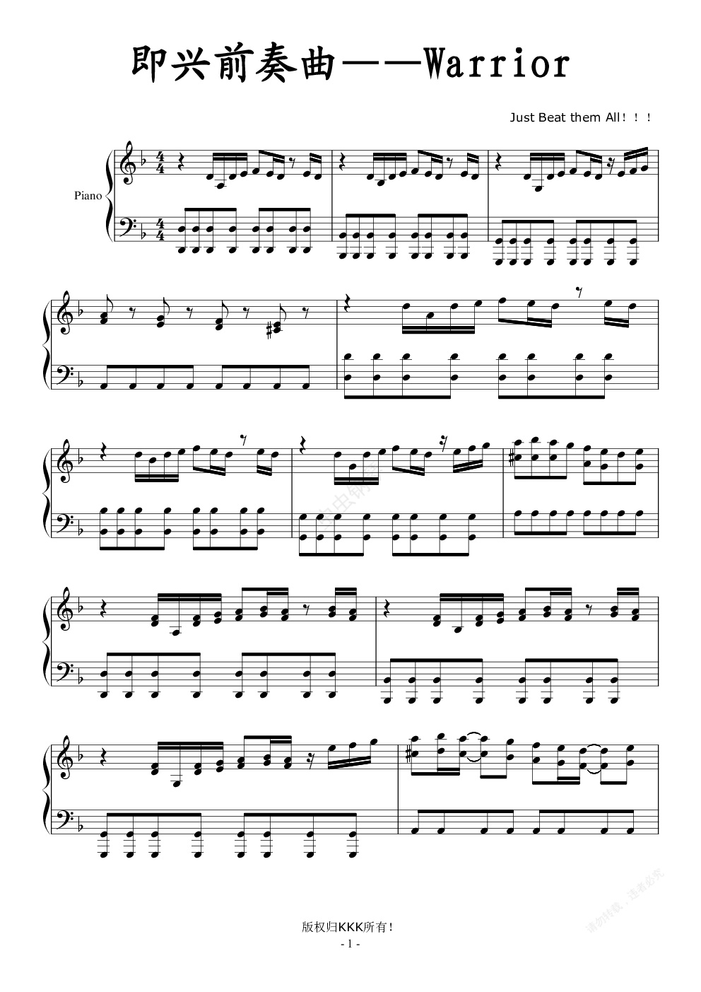 钢琴谱:即兴前奏曲——Warrior
