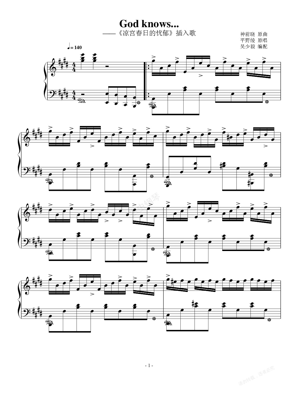 钢琴谱:God knows-《凉宫春日的忧郁》插入歌