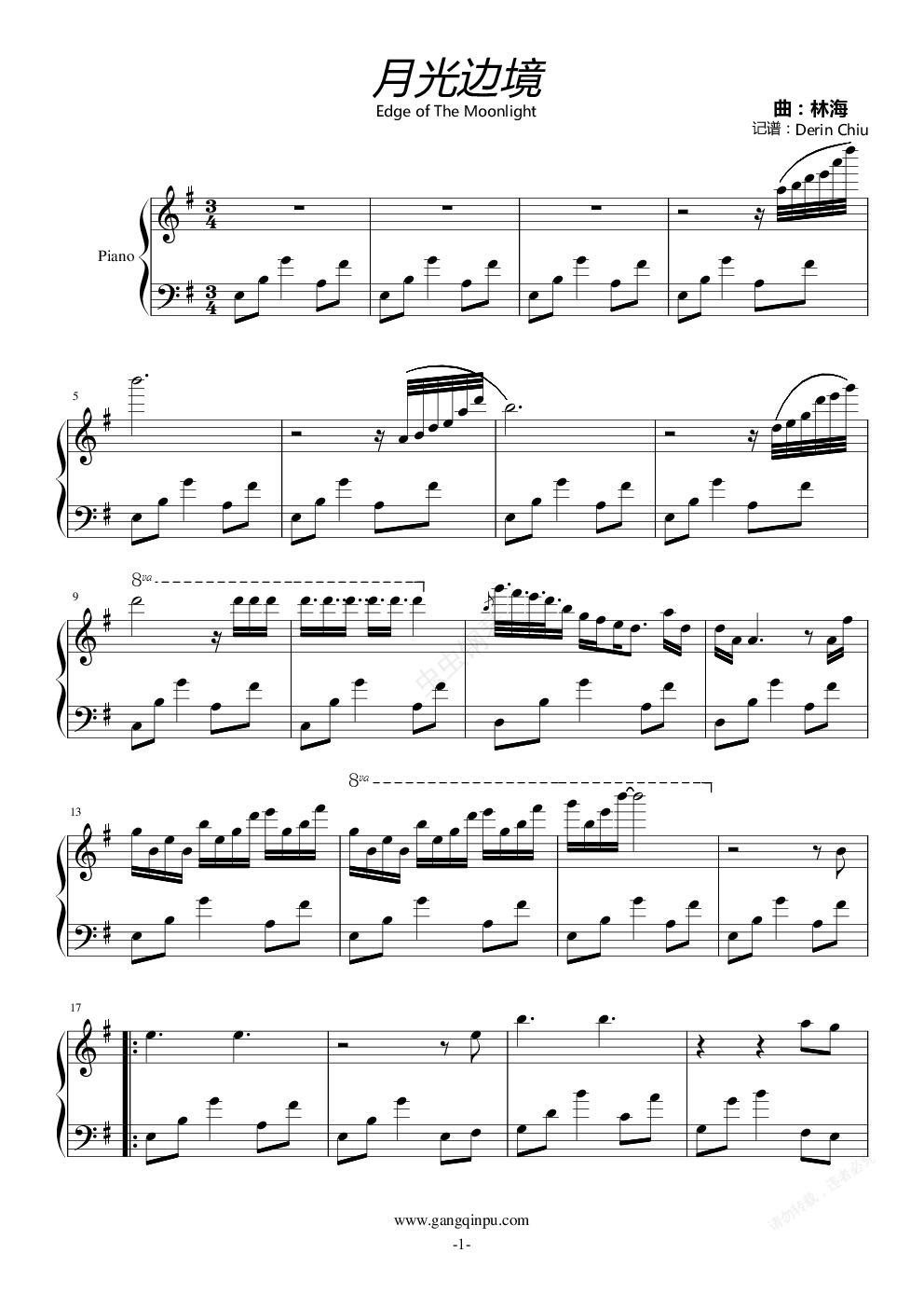 选自 林海《月光边境》 ---------------------------------- 这是很早扒的谱子,错误N多,那时比现在要水的多. 今天翻出林海的CD无意间听到这首曲子,决定fix一下~ 2011.6.29