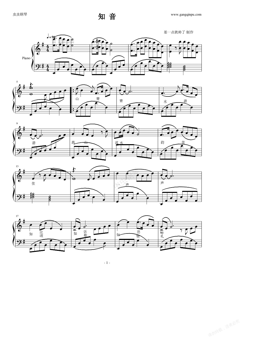 钢琴谱:知音