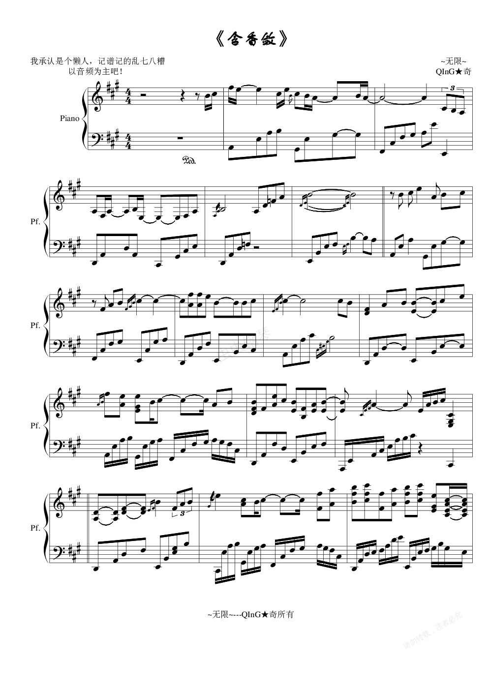 钢琴谱:含香敛