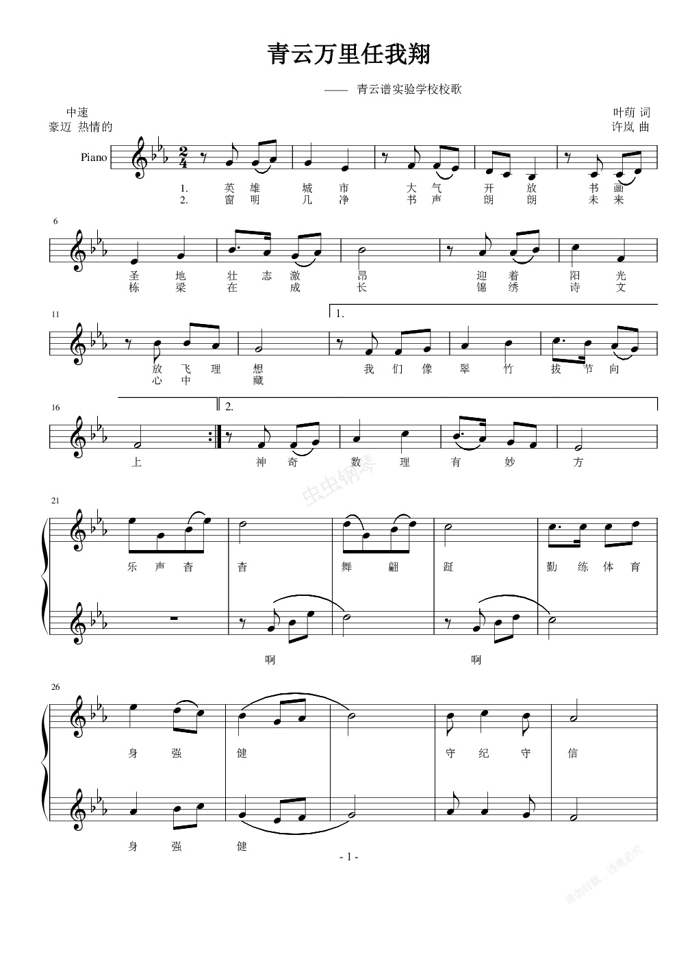 钢琴谱:青云万里任我翔