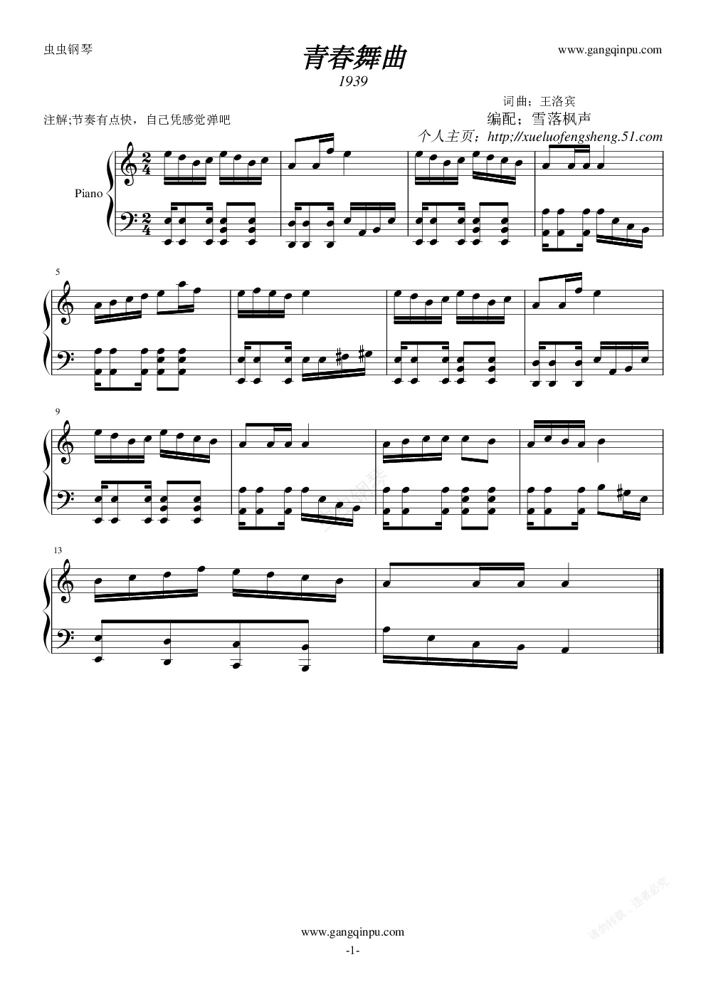 钢琴谱:青春舞曲