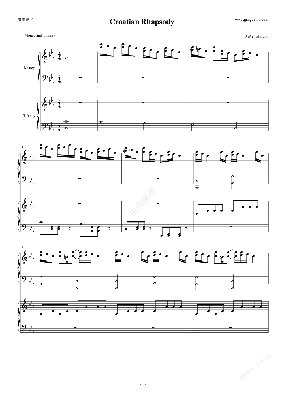 钢琴谱:克罗地亚四手联弹-(纯属娱乐)