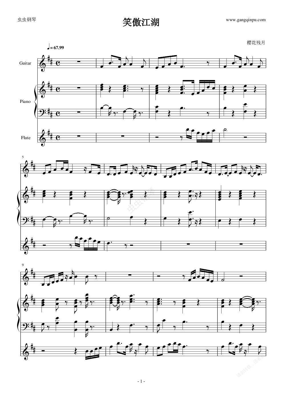 钢琴谱:笑傲江湖