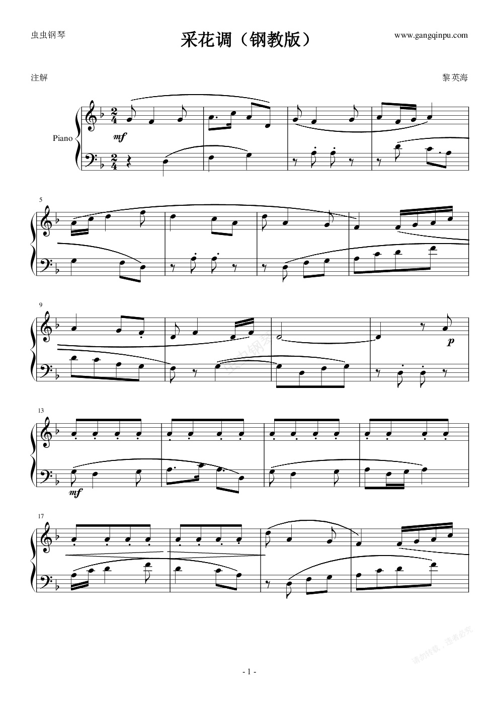 钢琴谱:采花调