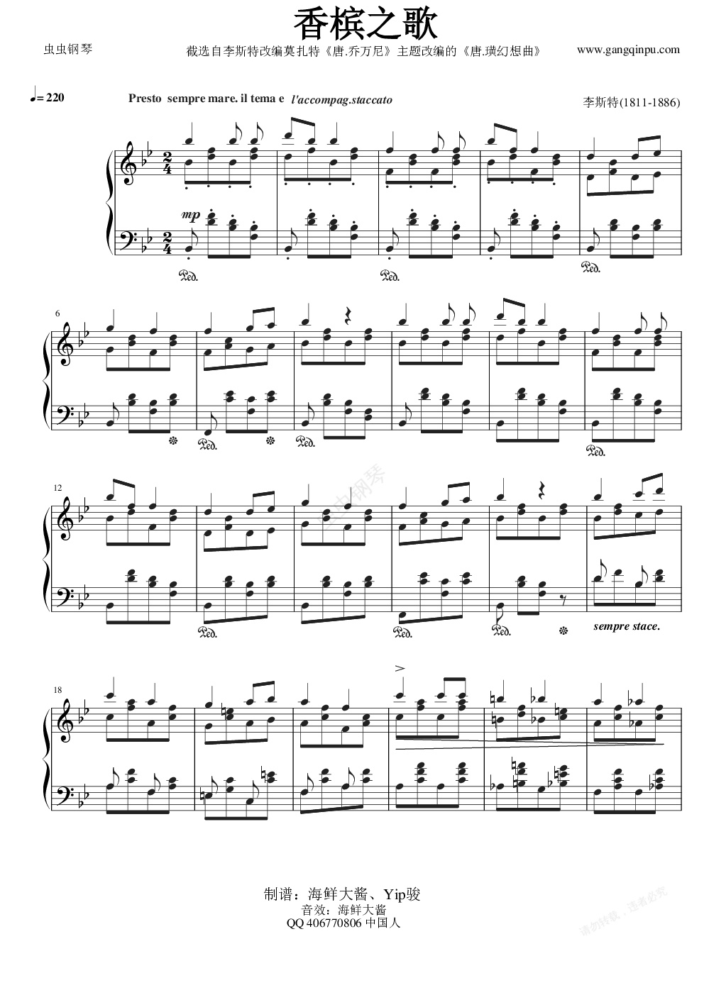 嘿嘿,第一次作谱。其实这个谱的前一半是我完成的,后一半是帮我完成的。这个谱子的音效基本上都是本人做的,音效是以郎朗在卡内基的录音为蓝本,但第一次做音效没什么经验,纯粹是摸着石头过河,所以做得不好的地方请大家指出来!虽然这个谱子短,才十几页,当却花了我很多很多个一小时。感谢的帮助,让我能更快的完成制谱工作。