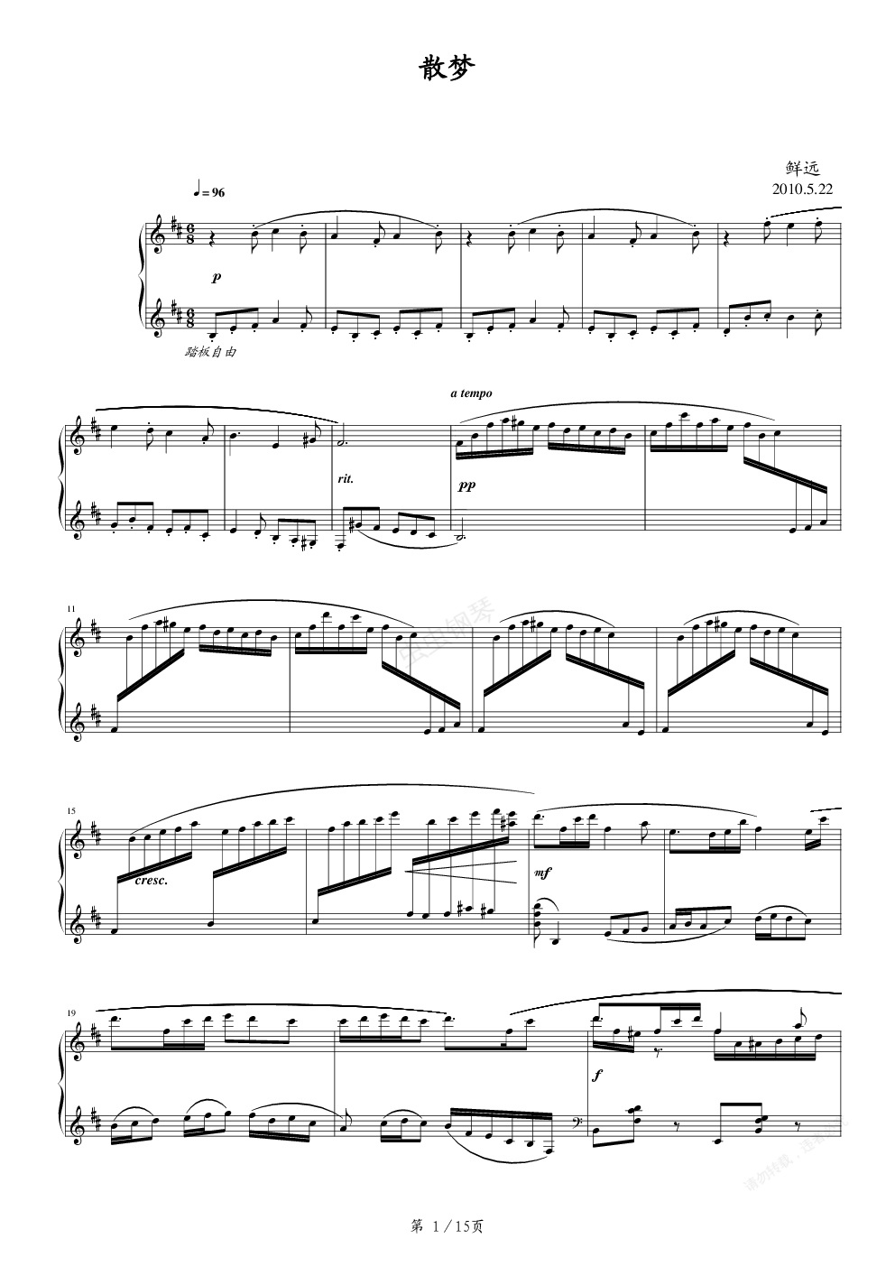 钢琴谱:散梦