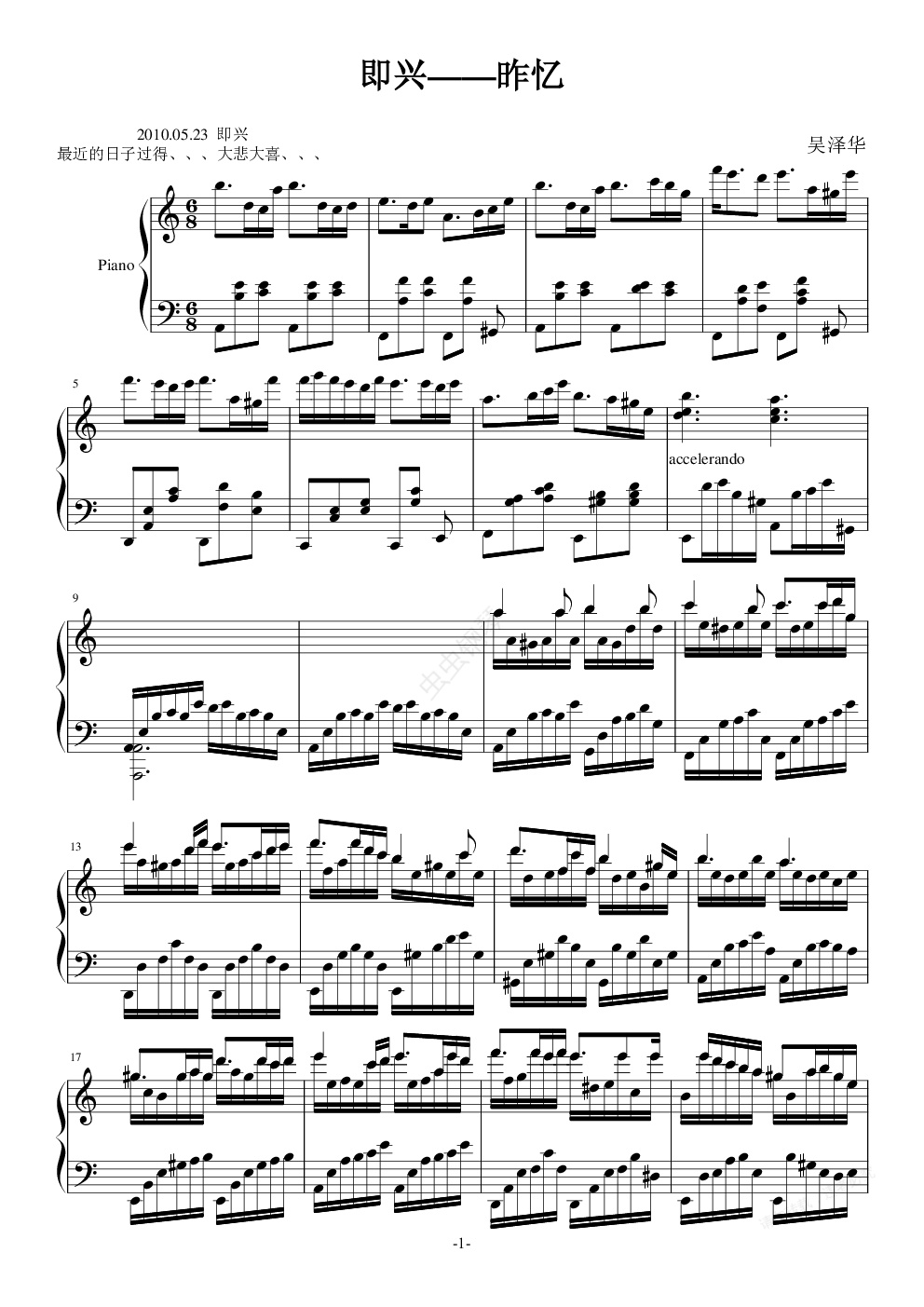 钢琴谱:即兴の昨忆