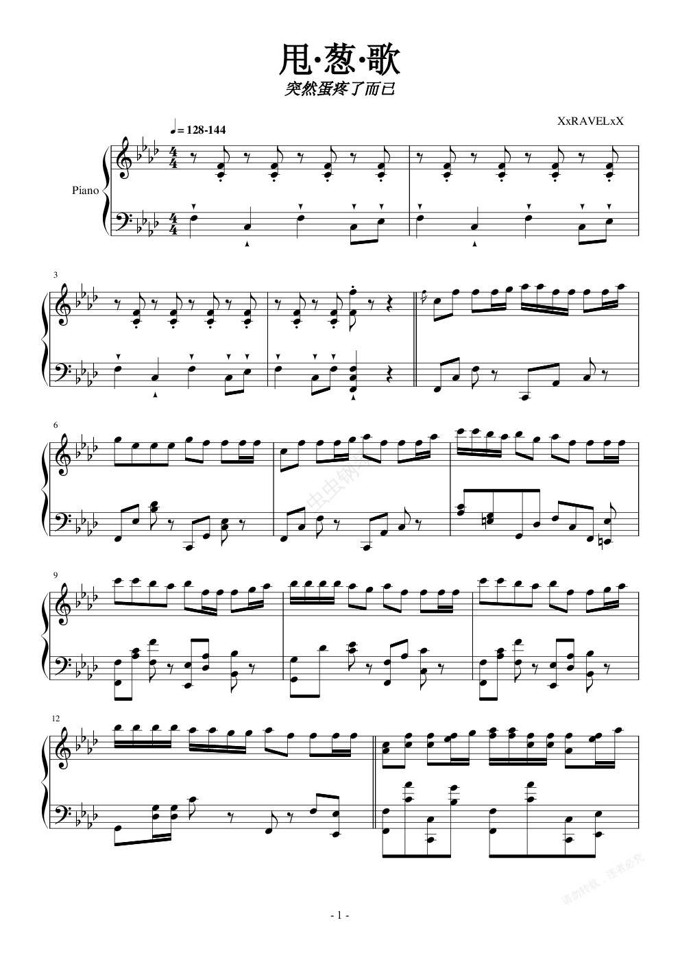 钢琴谱:随便改的钢琴甩葱歌(啊初稿)