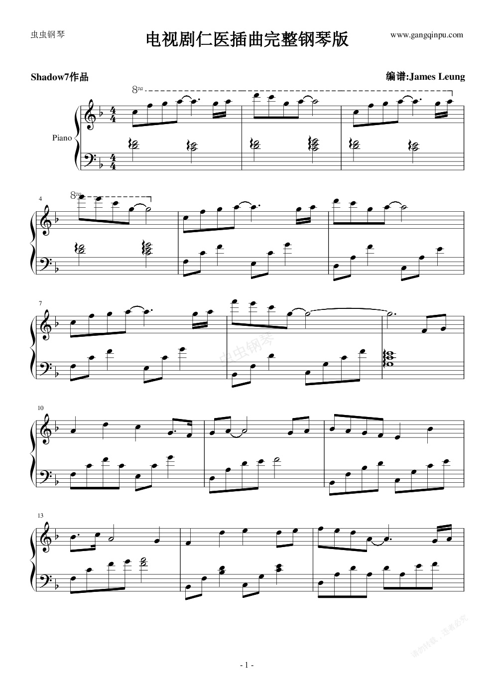 钢琴谱:仁医主题曲(S7完整版)