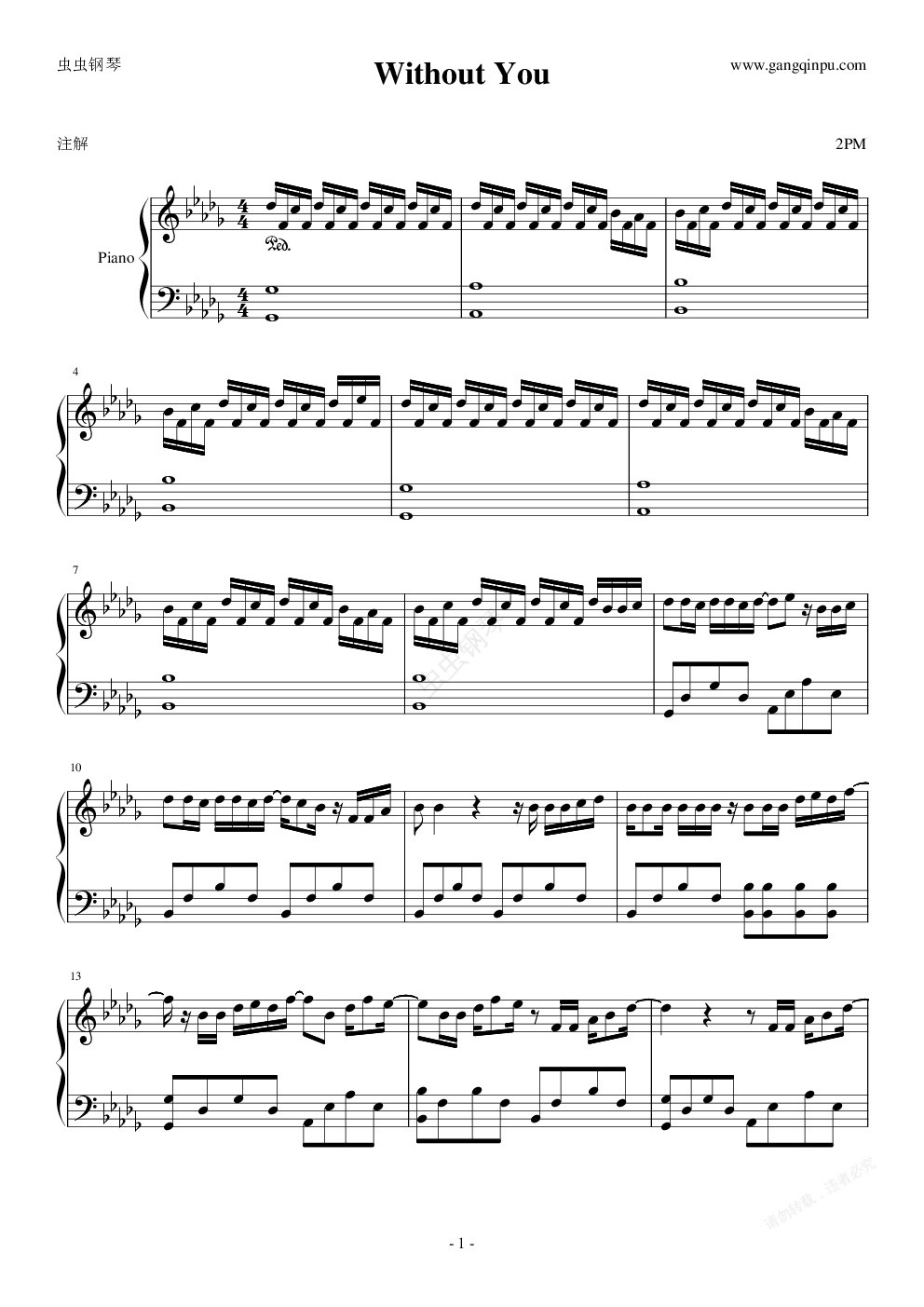 钢琴谱:【韩国】Without U