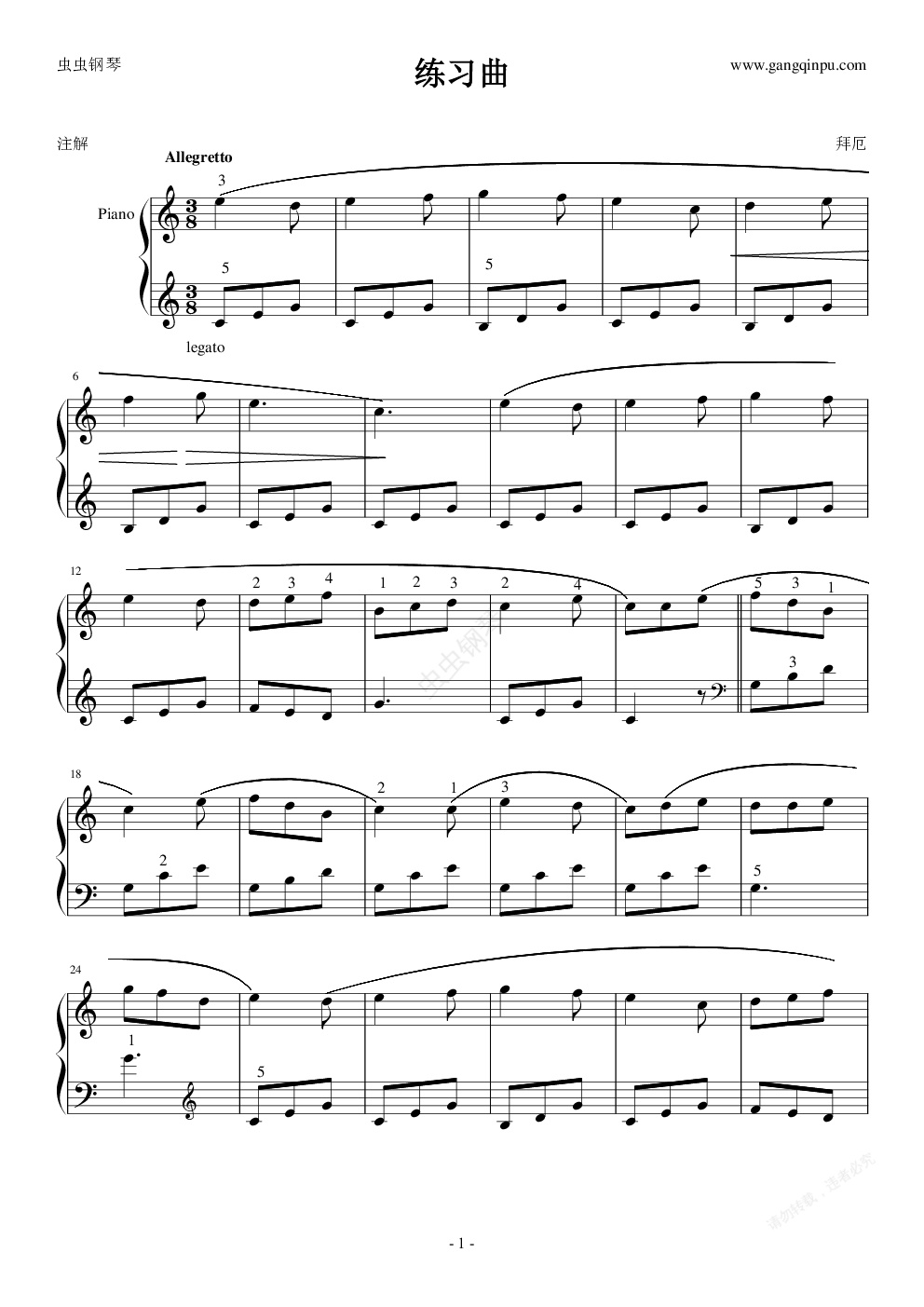 钢琴谱:拜厄练习曲