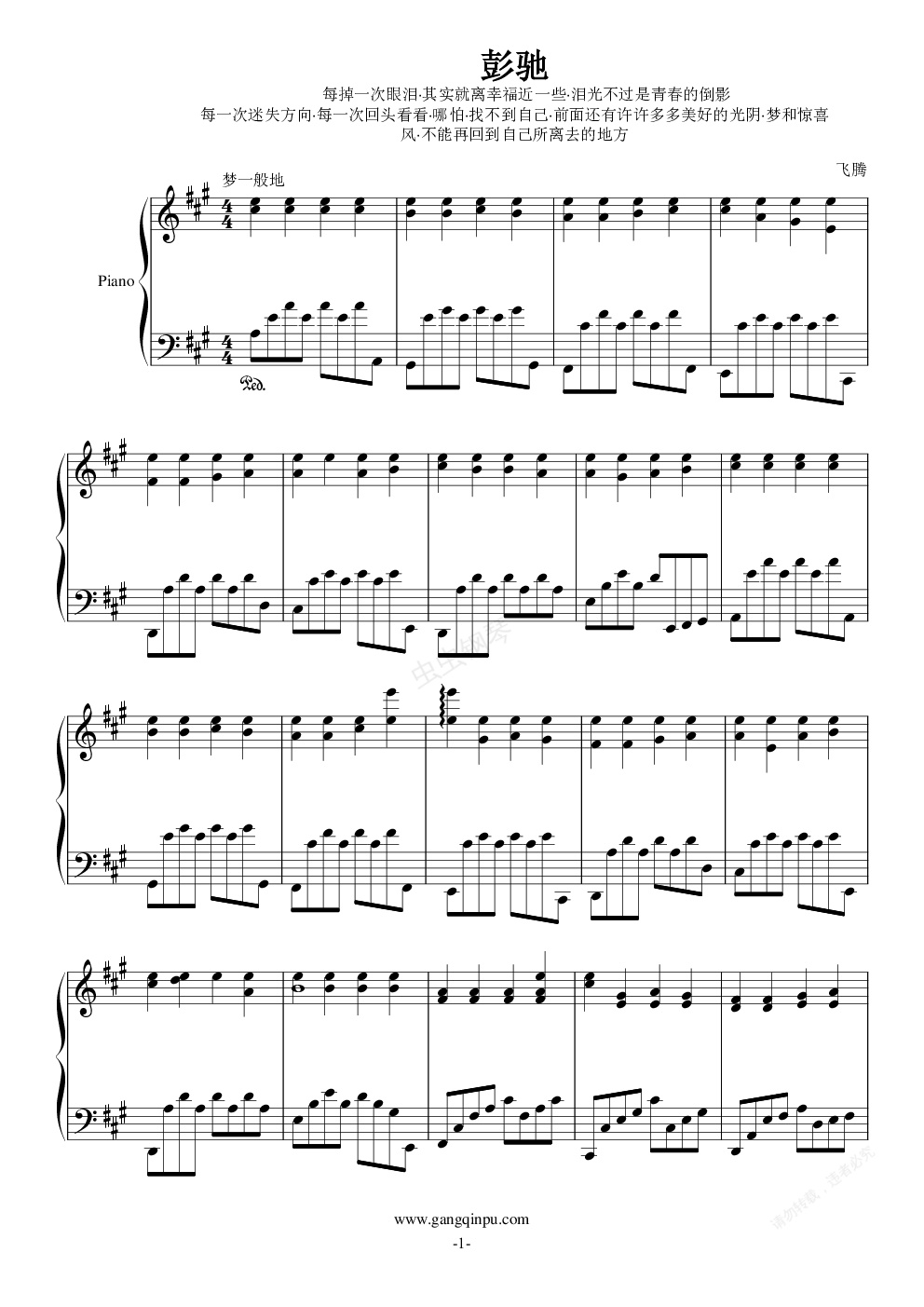 钢琴谱:彭驰
