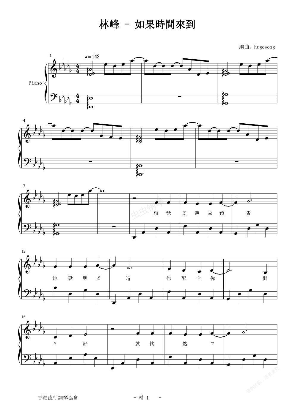 钢琴谱:如果时间来到
