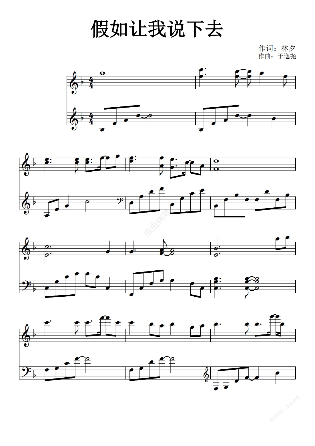 钢琴谱:假如让我说下去