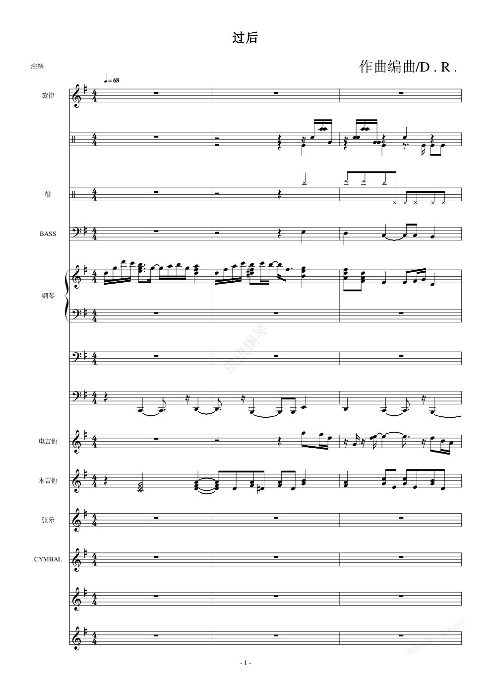 钢琴谱:过后