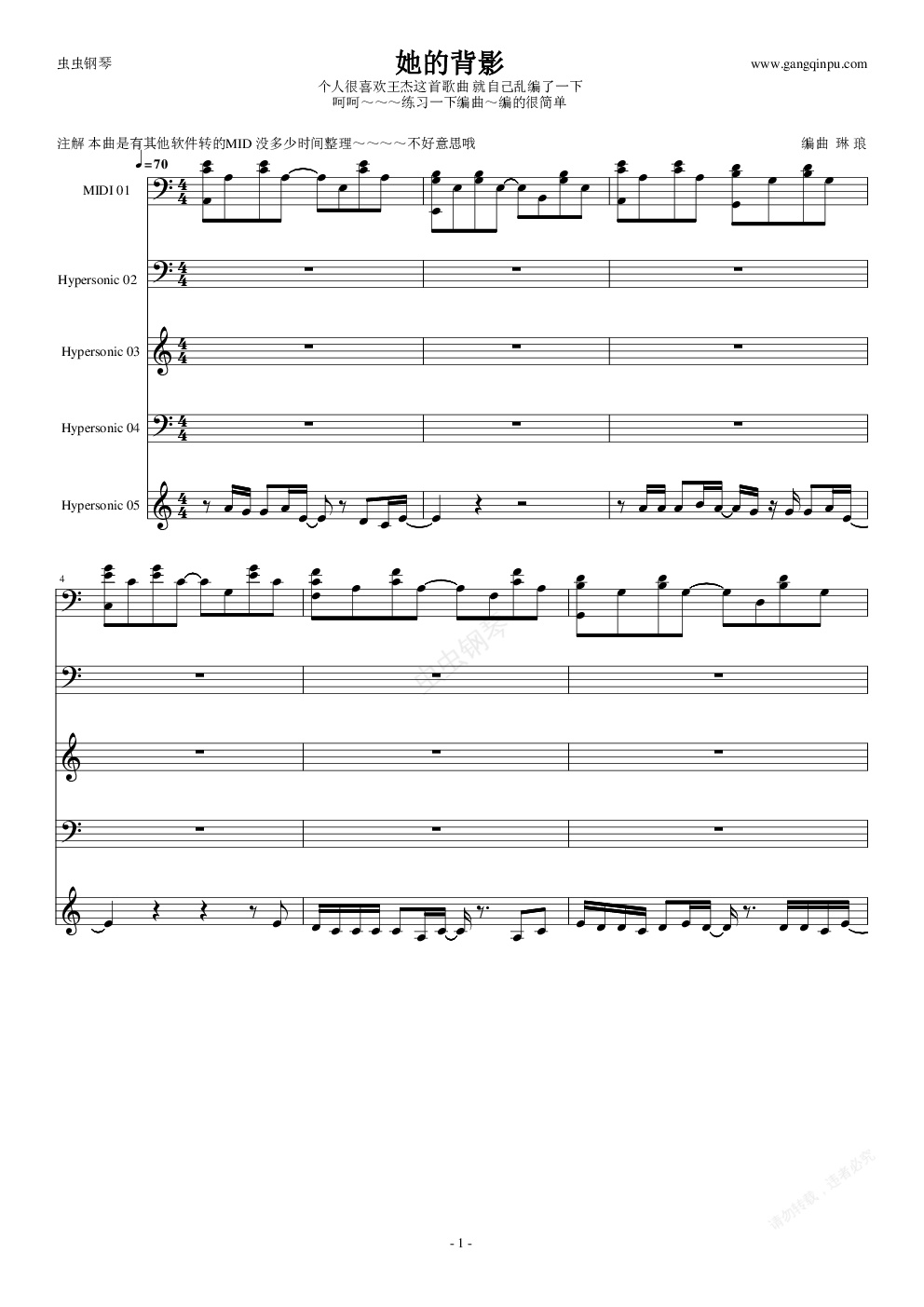 钢琴谱:她的背影