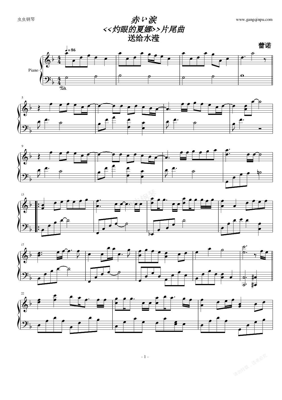 钢琴谱:灼眼的夏娜-赤い涙(唯美演奏)