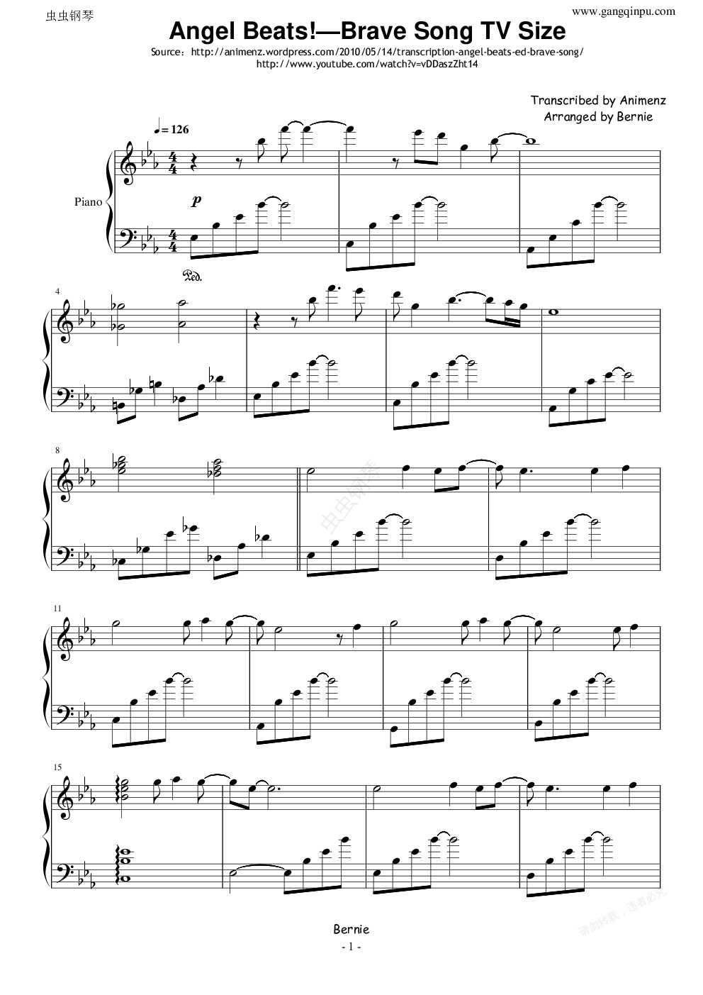 钢琴谱:Angel Beats!ED  Brave Song TV Size