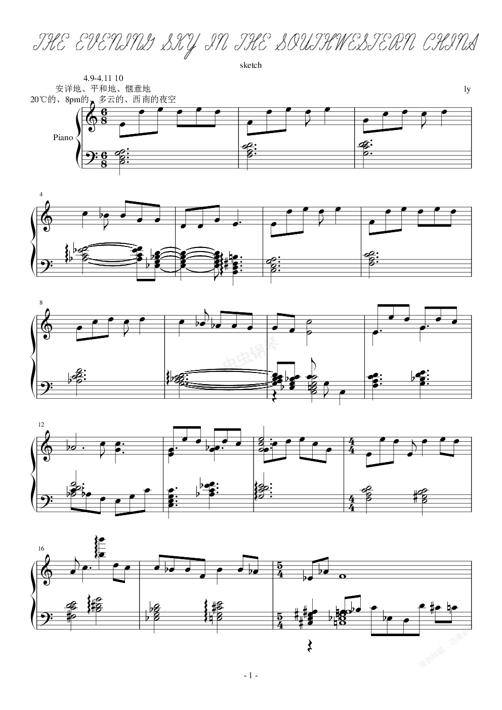 您的位置: 首页 > 钢琴谱库 > 西南的夜空