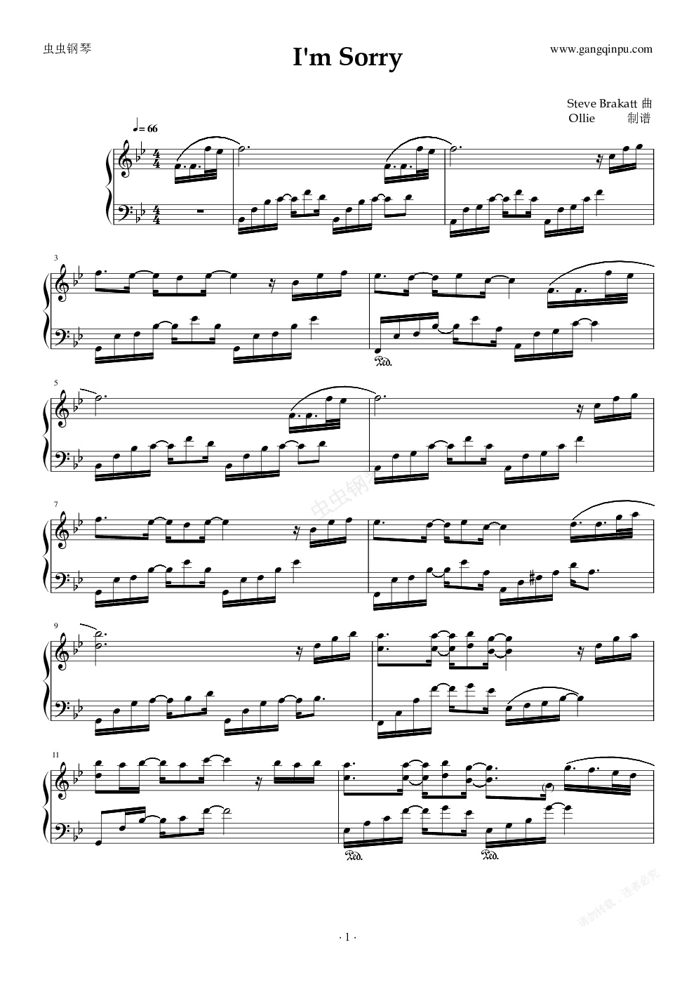 钢琴谱:I'm Sorry 對不起