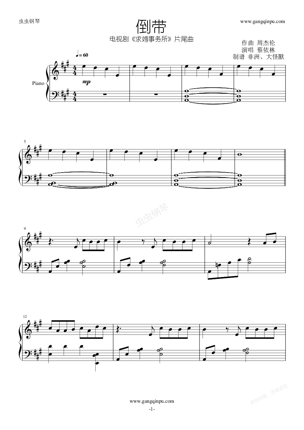 钢琴谱:倒带