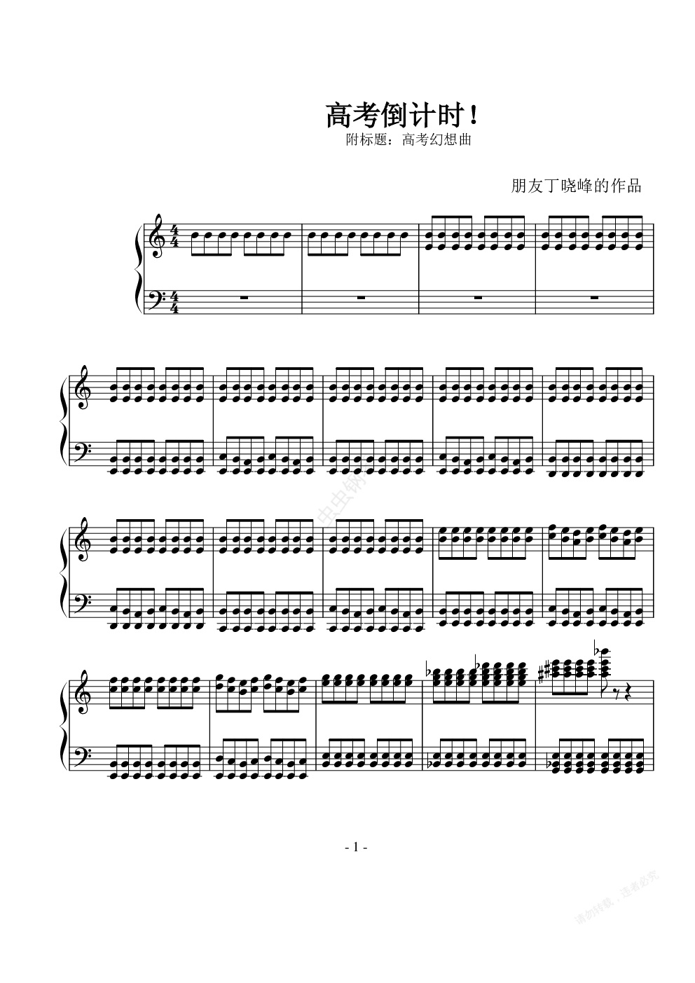 钢琴谱:高考倒计时