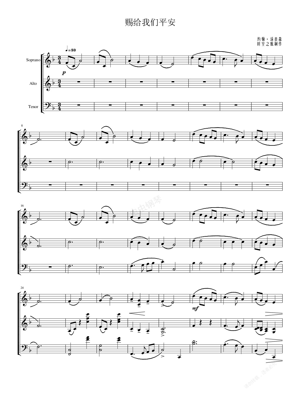 钢琴谱:赐给我们平安