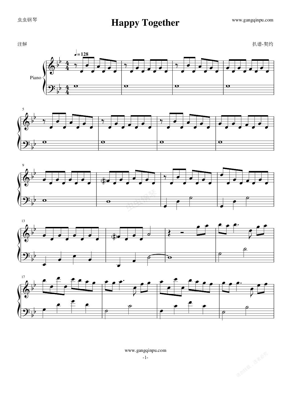 钢琴谱:Happy Together