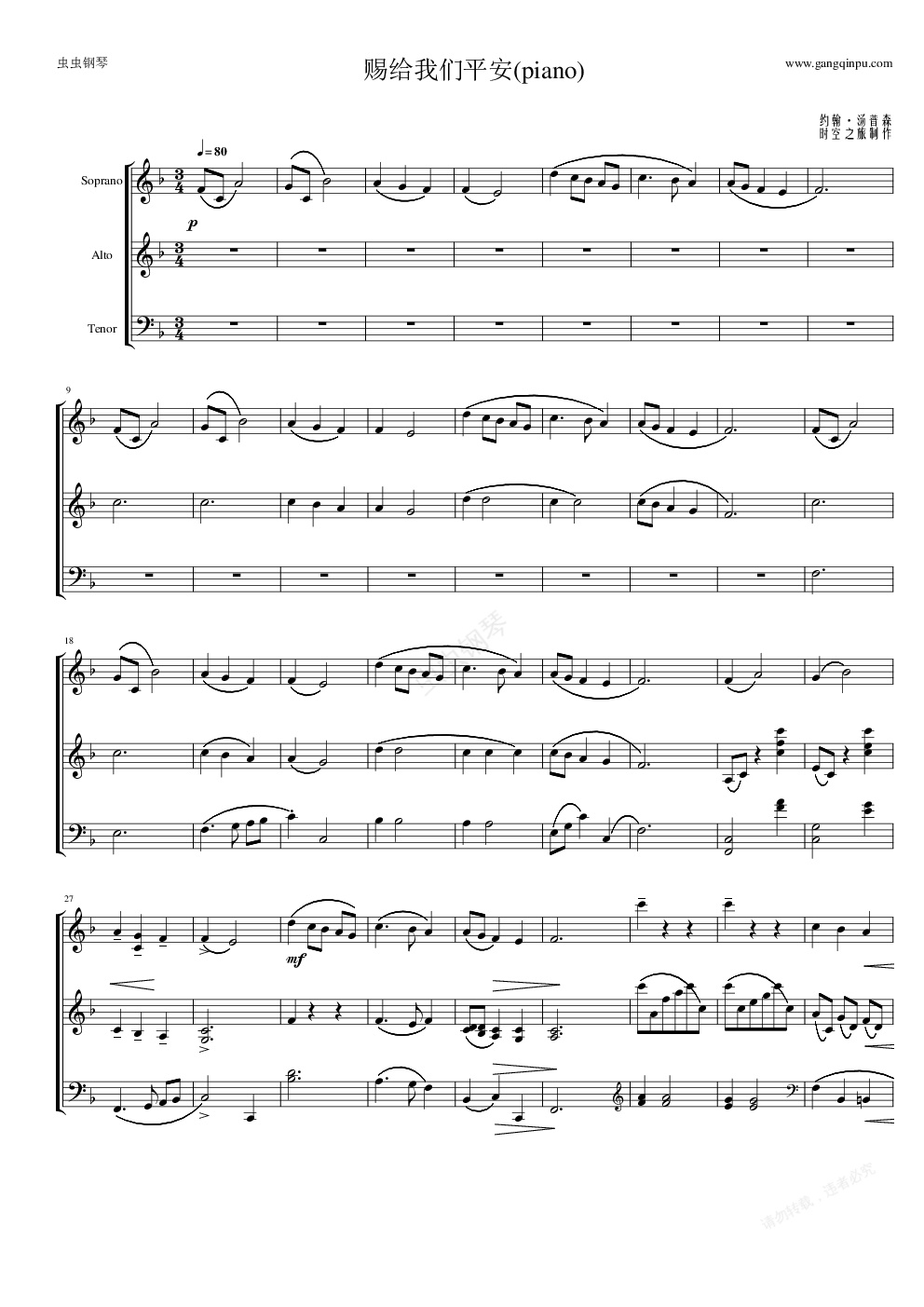 钢琴谱:赐给我们平安钢琴版