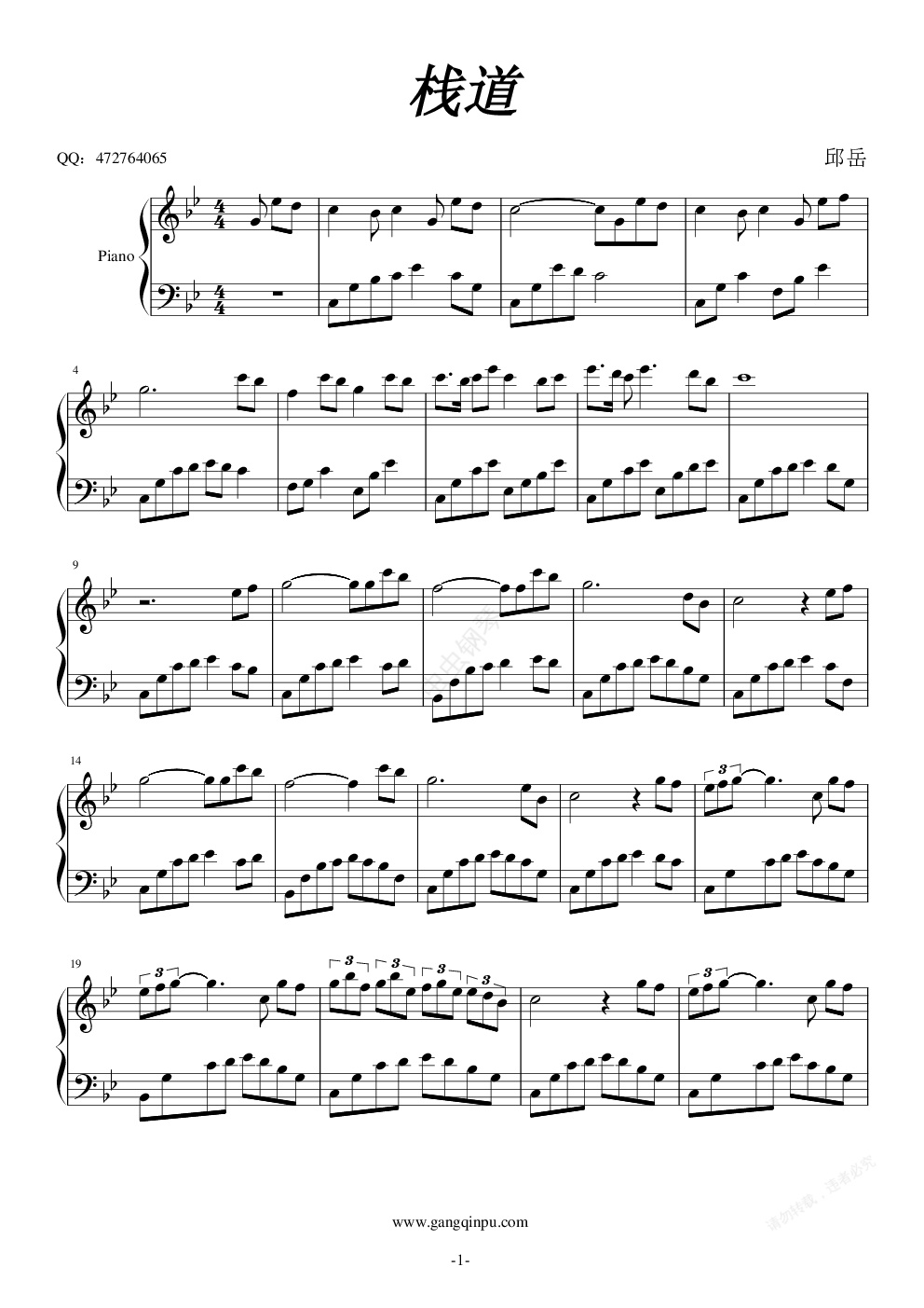 钢琴谱:栈道