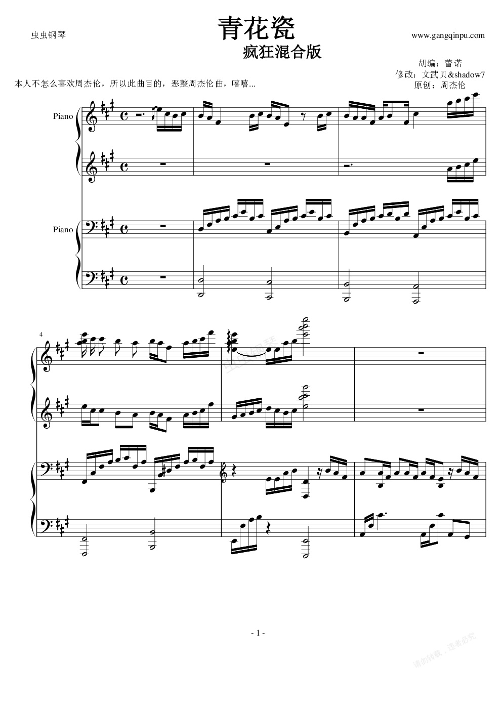 钢琴谱:青花瓷(疯狂混合版)