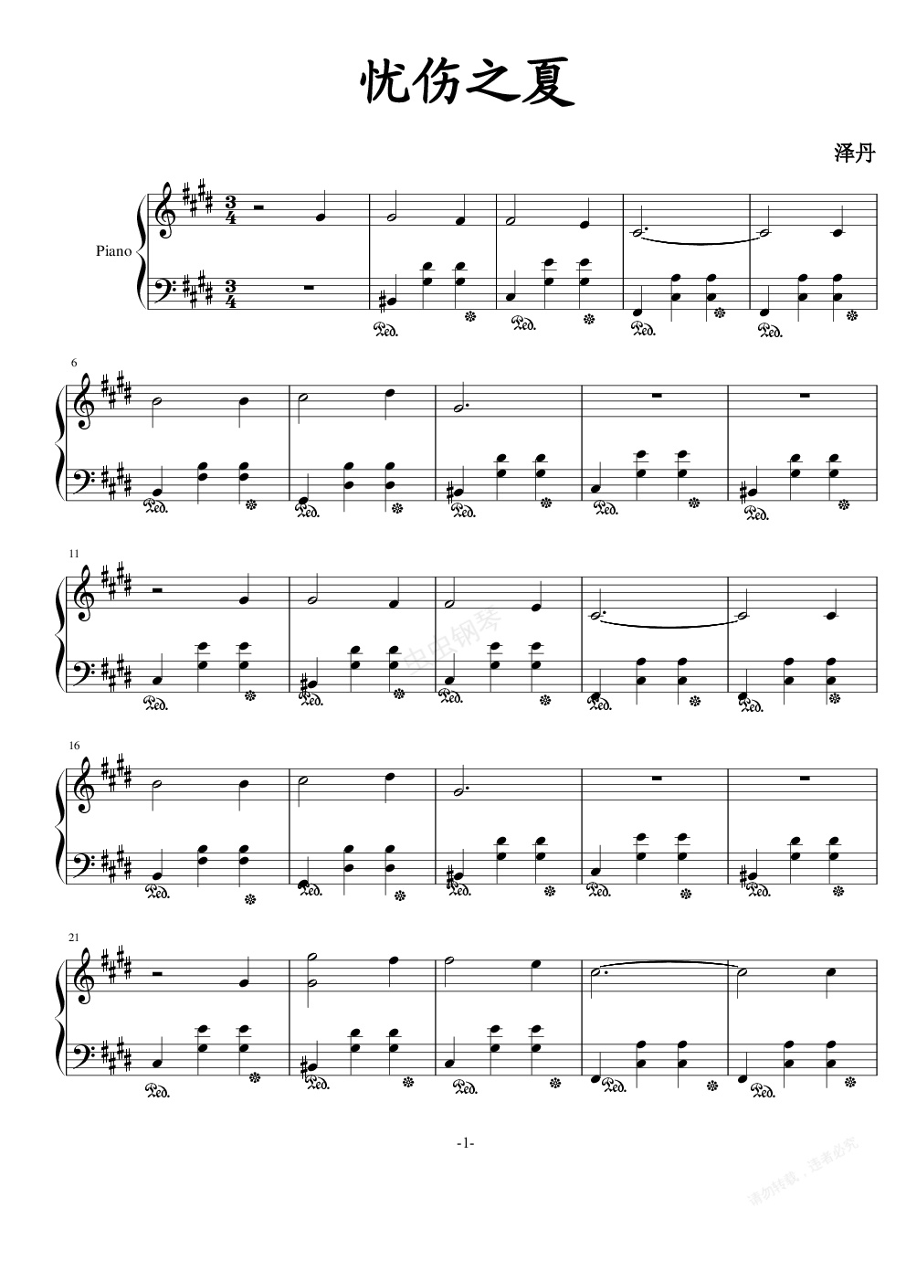 您的位置: 首页 > 钢琴谱库 > 忧伤之夏