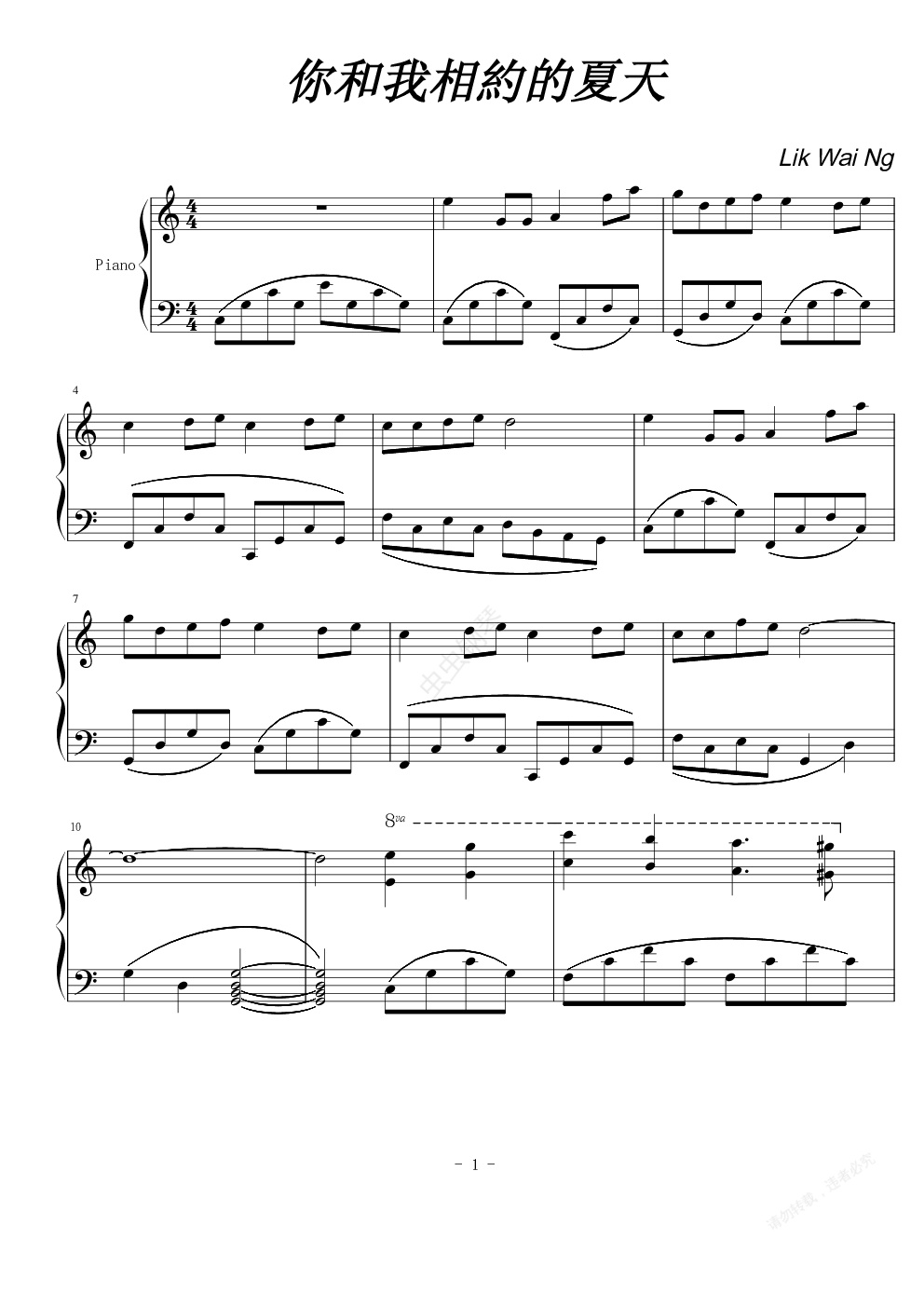 钢琴谱:你和我相约的夏天