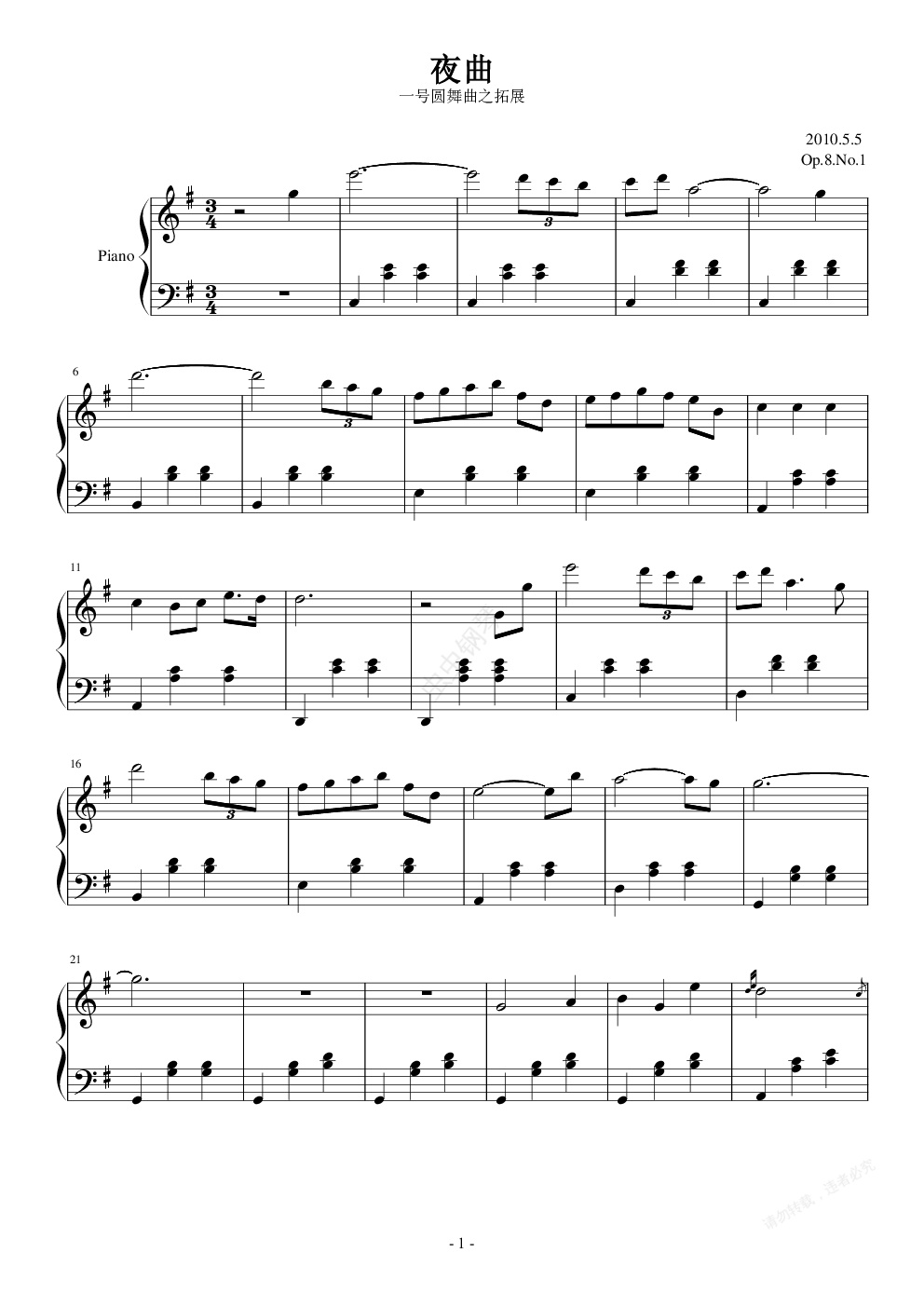 钢琴谱:第一号圆舞曲改夜曲——情人离