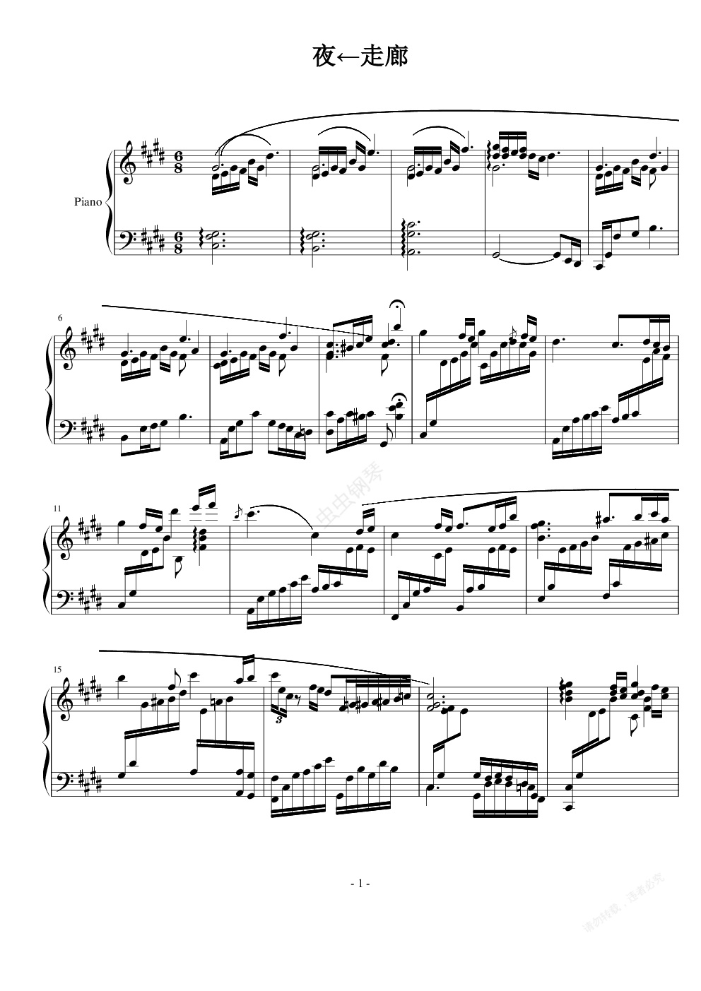 钢琴谱:夜←走廊