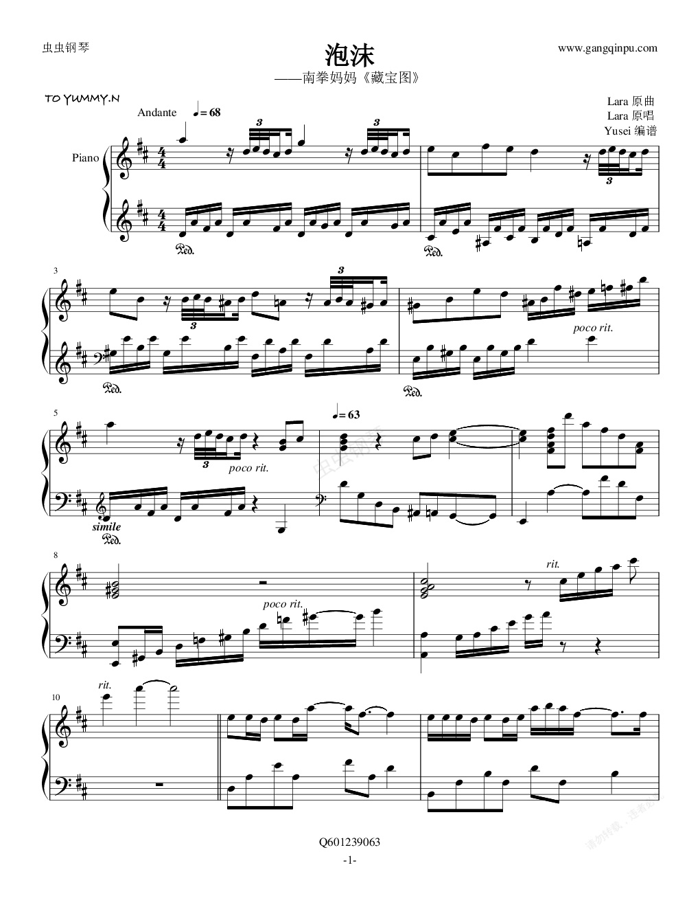 谱中标有poco rit.和rit.的地方的速度节奏和原曲有点差异(本人尽力想拷贝不走样无奈水平有限orz)请以原曲的速度和节奏为准