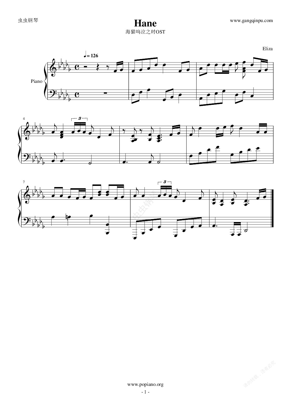 钢琴谱:Hane