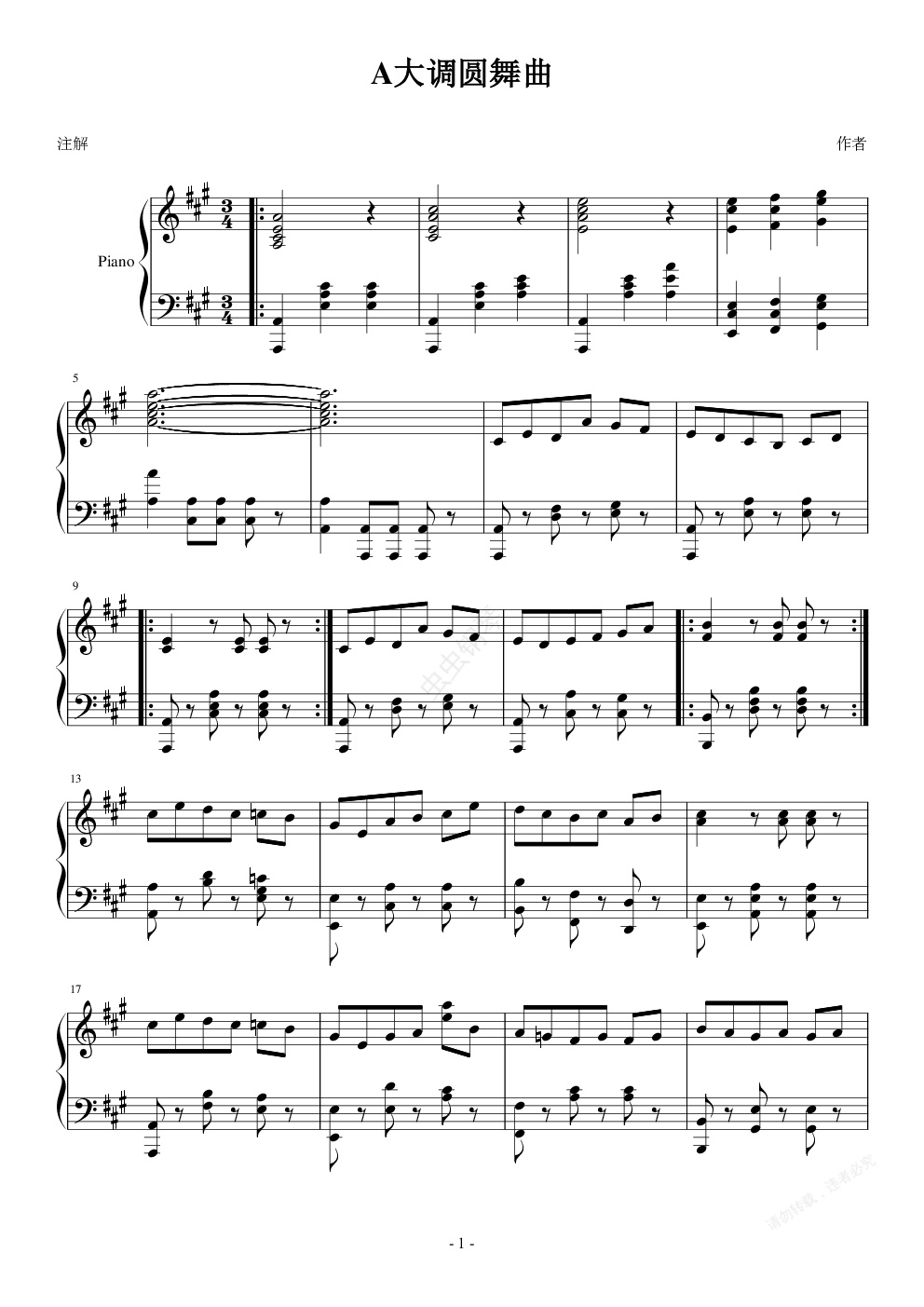 钢琴谱:A大调圆舞曲
