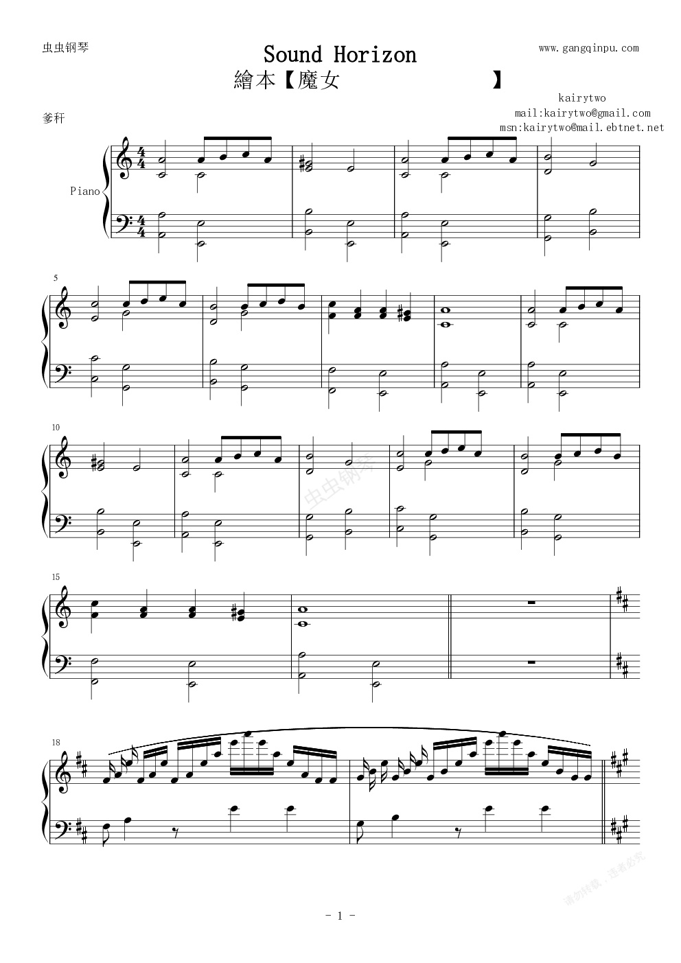 钢琴谱:エルの繪本【魔女とラフレンツェ】